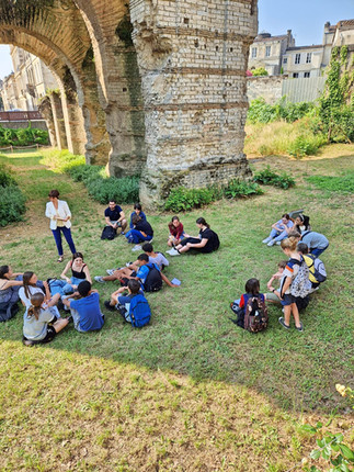 Nos élèves ont pu s’approcher des vestiges du Palais et découvrir, grâce à la conférencière qui les accompagnait, qu’il s’agissait du plus ancien monument de la ville de Bordeaux et plonger ainsi dans l’Histoire reculée de l’ancienne cité gallo-romaine – à seulement deux pas de notre établissement.